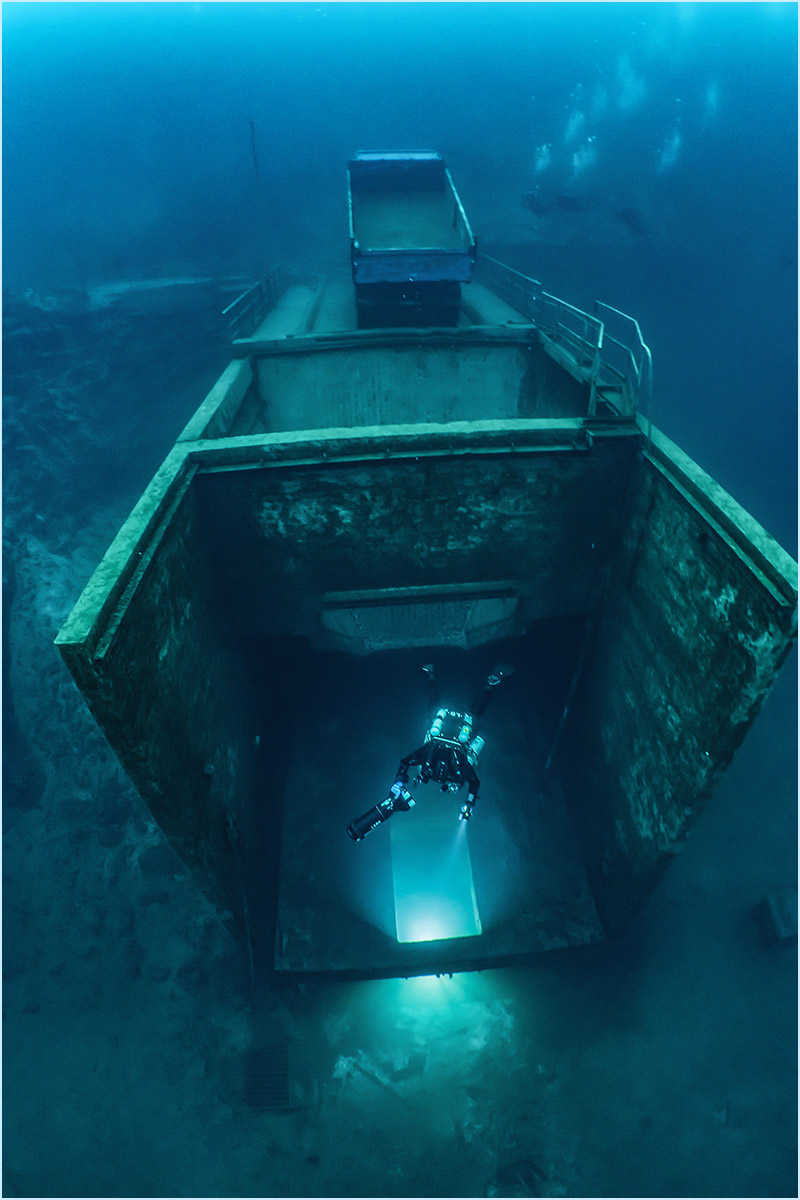 With a small camera system, I became involved with underwater photography in the early 1990s. The fantastic visibility and the impressive scenery of the walls and structures in the „See im Berg“ made me intensifying my photography ambitions. The Sunlight beams and long shadows can create spectacular impressions under water, so I kept this aspect in focus. Over the next several years, with the help of my sister, who is an educated photographer, I improved my photography skills.