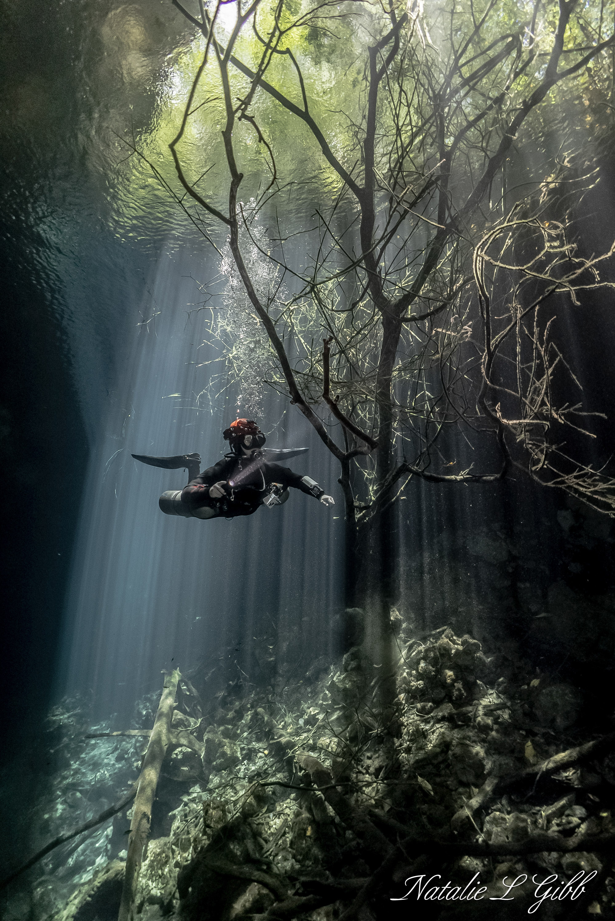 At a loss as to what to do for the next six months, I decided to regroup and complete my divemaster internship with a local shop. I worked at the desk doing sales in exchange for dives, and the shop decided I must join one of their guides on a guided cenote cavern dive, as I needed to know what I was selling. Knowing I would hate cavern diving and have no desire to ever consider cave diving, I was dragged along with a group.