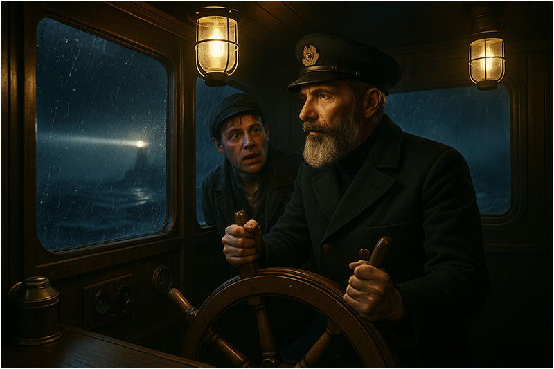 Moments later, heavy boots echoed on the companionway as the chief engineer descended into the engine room. The thrum of machinery mixed with the low, troubling groans of the hull. Ten tense minutes dragged by before the engineer reappeared, cap in hand, his face streaked with sweat and coal dust.