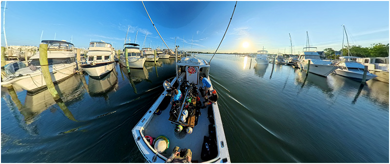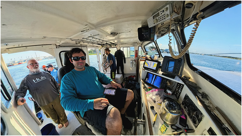 Rebreather divers Dave Kelly, John Howard and Greg Melzak join Brian Hamilton and myself along with Captain Kevin Littleton at the marina in Beaufort, North Carolina.