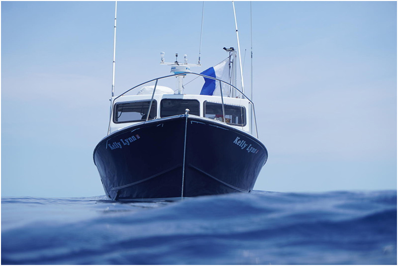 Loading our rebreather equipment on the 35 foot dive vessel, the Kelly Lynn we get comfortable for the two-hour run out to the wreckage. Once on site, the Captain and first mate set the anchor into the wreckage as the team prepares for the dive.